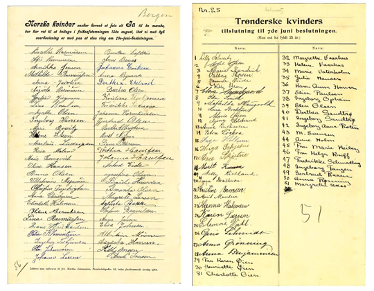 すでにフレデリッケ・マリエ・クバンについては「ロビイストの女王」として紹介してあるが、彼女は投票場に赴き無理矢理にでも投票を試みたのだが、虚しく拒否されてしまった。それならばと、ノルウェー婦人衛生連盟と全国婦人参政権の両方の会長を務めていた彼女は、トロンハイムの他の女性たちとともに全国の女性を総動員して、ノルウェー独立に関する女性の署名運動を展開したのだった。